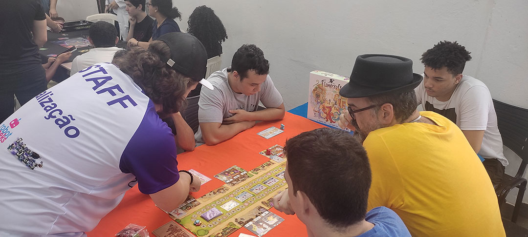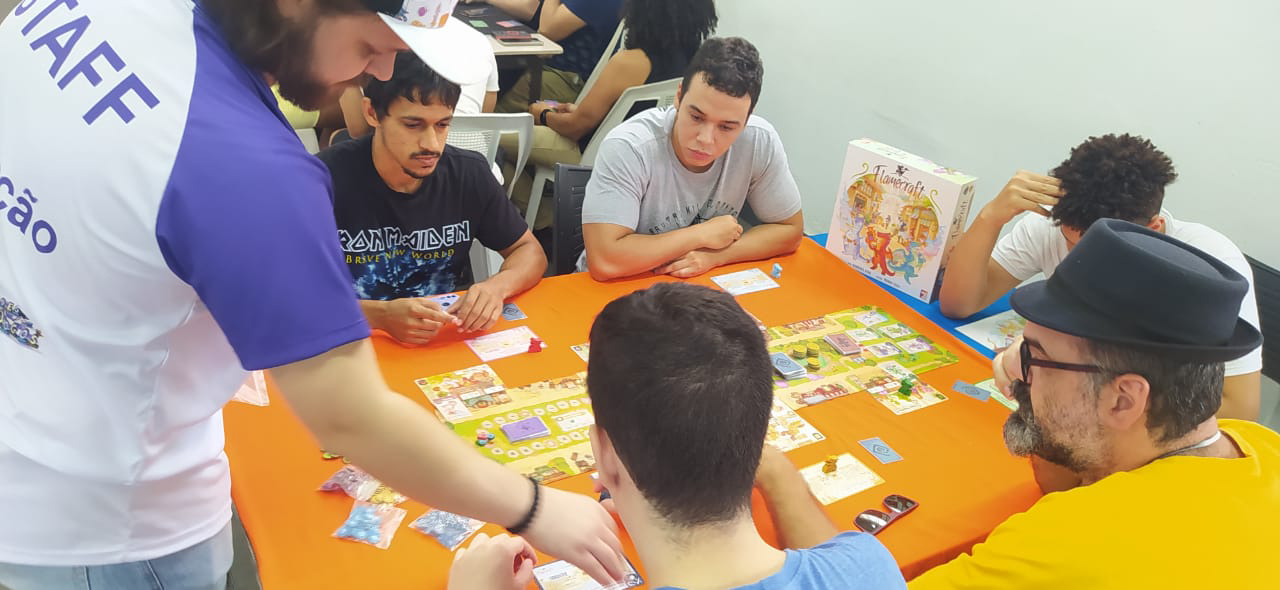 | 13 às 14h | MeepleBR (Marajoara | Me Enganei | Ito) Galápagos (Survive The Island | Mandalorian Adventures | Dobble | Happy Salmon | Bounty Hunters) Devir (Alquimistas | Don Capollo | Catan) BG Bureau (Loira do Banheiro | Veio do Saco | Bebê Diabo | Máquina dos Sonhos) HG Toys (Qwirkle | Penguins Pool Party | Cats & Boxes) Calamity (7 Selos) Mosaico (Ritus) Party Games (Segue o Fluxo) | Magic The Gathering Pokémon Yu-Gi-Oh |