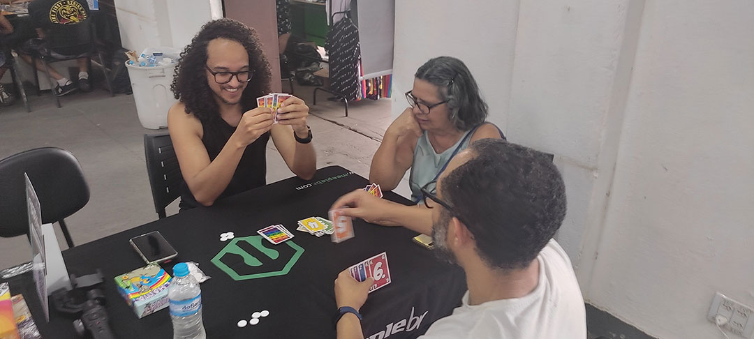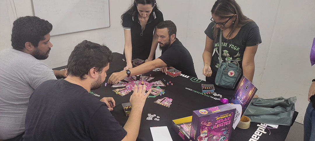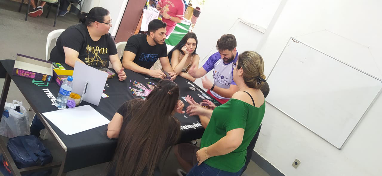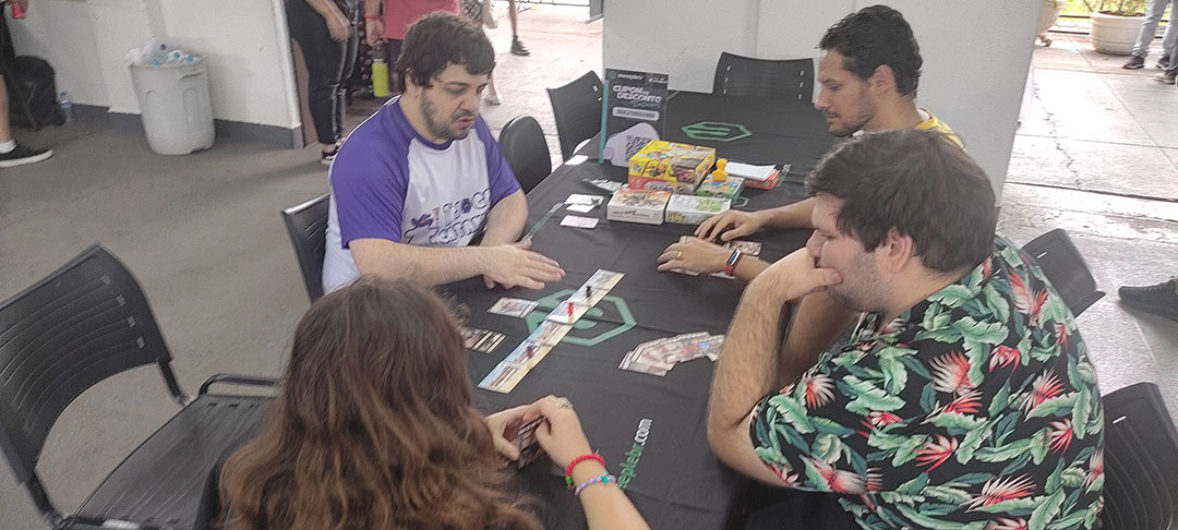 | 12 às 13h | MeepleBR (Marajoara | Me Enganei | Ito) Galápagos (Survive The Island | Mandalorian Adventures | Dobble | Happy Salmon | Bounty Hunters) Devir (Alquimistas | Don Capollo | Catan) BG Bureau (Loira do Banheiro | Veio do Saco | Bebê Diabo | Máquina dos Sonhos) HG Toys (Qwirkle | Penguins Pool Party | Cats & Boxes) Calamity (7 Selos) Mosaico (Ritus) Party Games (Segue o Fluxo) | Magic The Gathering Pokémon Yu-Gi-Oh |